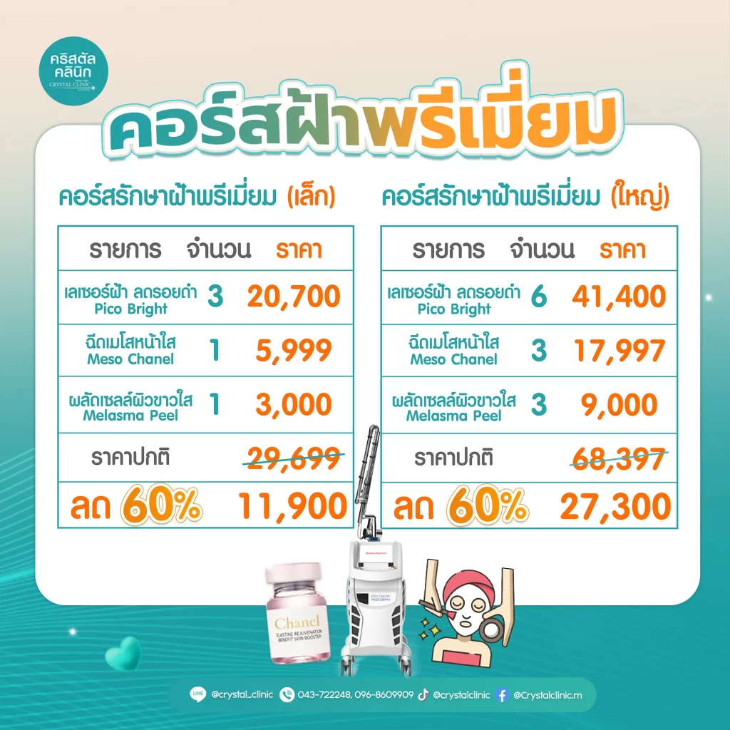 บริการรักษาฝ้า กระ จุดด่างดำ และปัญหาผิวหน้าหมองคล้ำ ที่ คริสตัลคลินิก มหาสารคาม